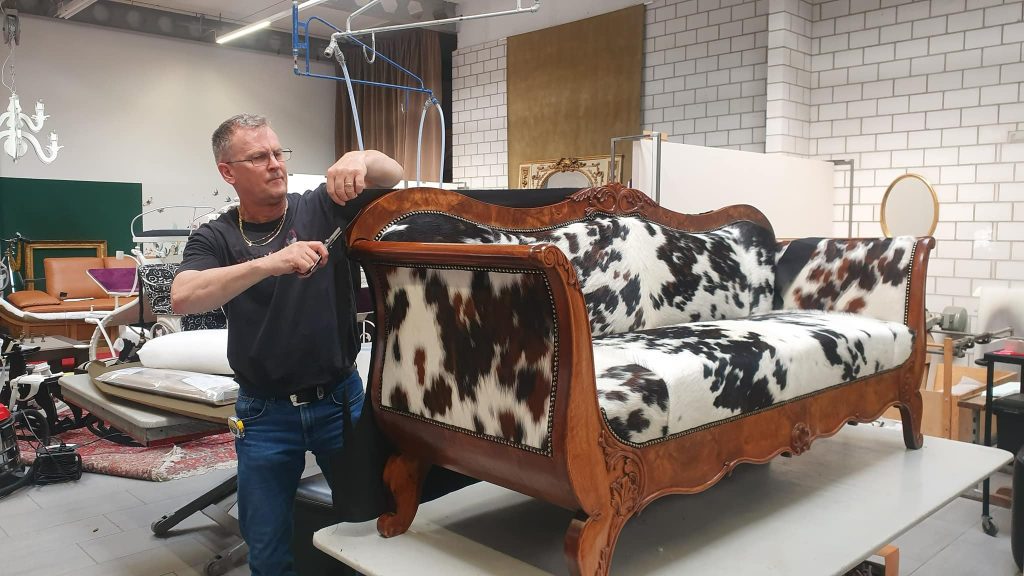 Wir verarbeiten beinahe alle Materialien, schwierige Ornamenten Stoffe bis zum Neckleder. So ist jedes Möbel ein