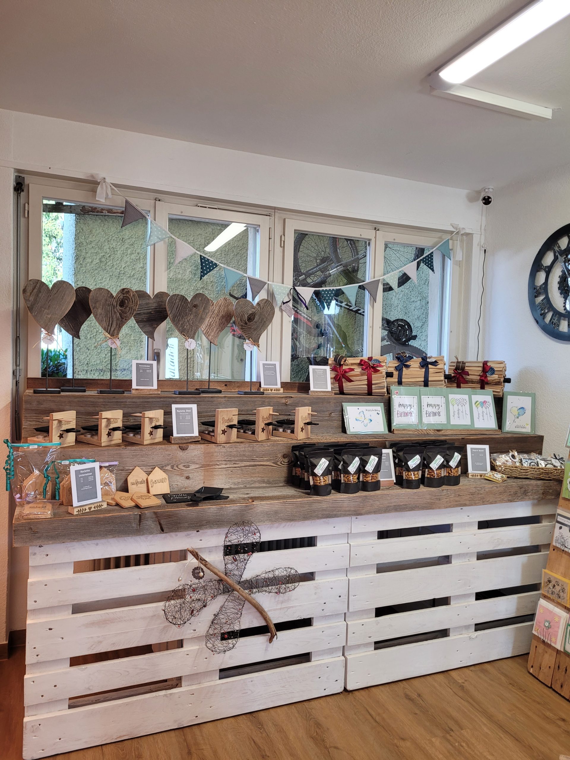 Wir bieten erwachsenen Personen mit psychischen Beeinträchtigungen und/oder psychosozialen Schwierigkeiten und/oder leichten kognitiven Beeinträchtigungen eine begleitete Wohnform. Es werden Personen aufgenommen, welche eine gemeinschaftliche Lebensform mit interner oder externer Tagesstruktur und teilzeitlicher Beschäftigung suchen. Personen, die eine Übergangslösung benötigen oder eine Arbeitsintegration und ein neues soziales Umfeld anstreben. Wir produzieren in der Tagesstruktur kreative und einzigartige Geschenke aus unseren Werkräumen und Garten. Dekoratives, genussvolles, erfrischendes oder romantisches ... Ideen mit Herz... verschenken! Unser Selbstbedienungs-Lädeli ist täglich von 7 bis 20Uhr offen. Lass Dich inspirieren, beraten für individuelle Geschenke und Mitbringsel.