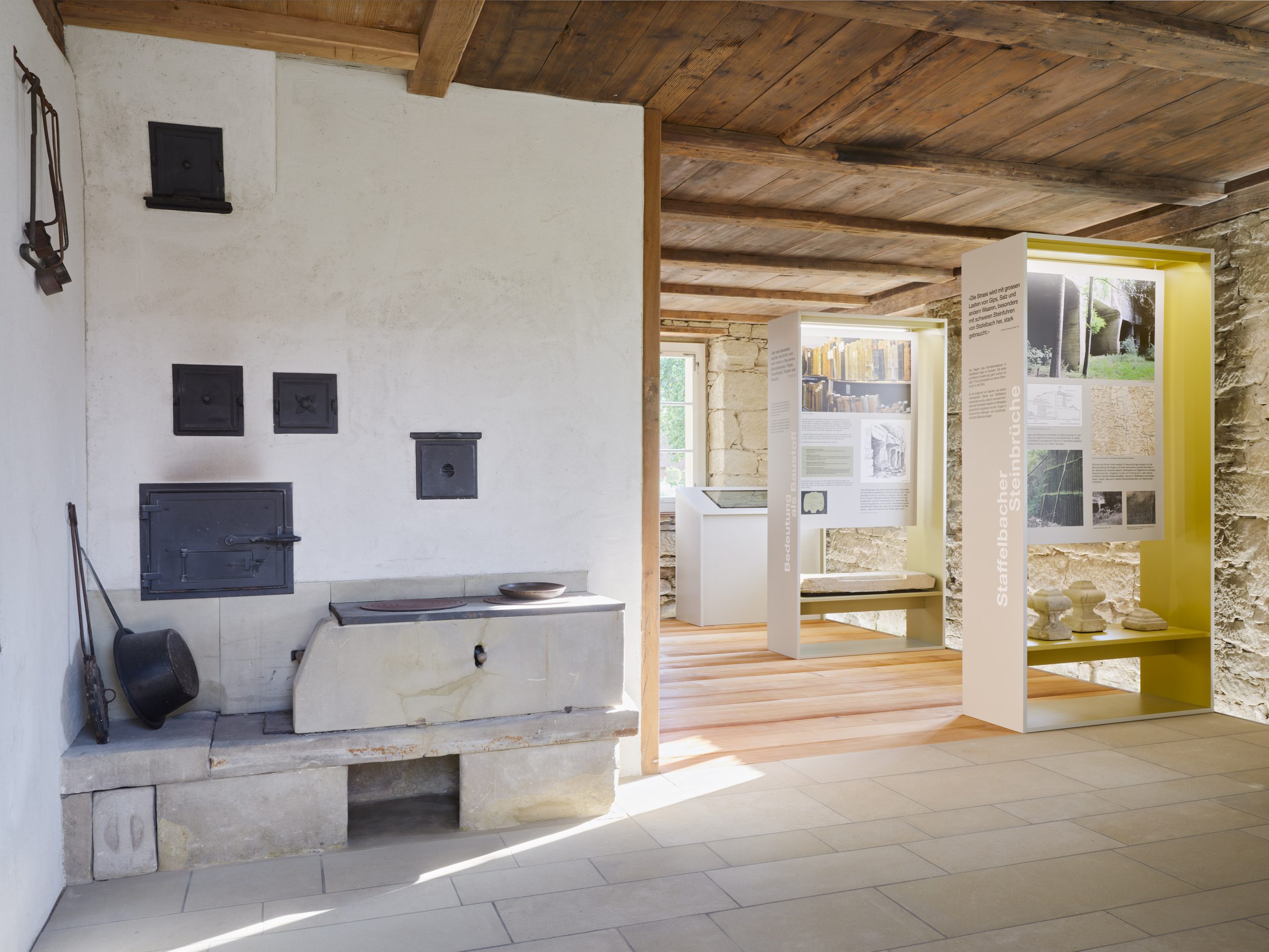 Staffelbacher Sandstein wurde über Jahrhunderte als Baustoff im Kanton Aargau und in angrenzenden Regionen verwendet. Im Sandsteinmuseum wird die Geschichte des Staffelbacher Sandsteins in fünf Themenbereichen präsentiert. Die Entstehung und Gewinnung von Sandstein, die Bedeutung als geschätzter Baustoff in der Region, Handel und Gewerbe mit Ofenplatten sowie die geologisch prägnante Gesteinsschicht des Staffelbach-Grobsandsteins werden mit historischen Bildern dokumentiert. Das Dachgeschoss ist den interessanten Fossilienfunden gewidmet. Öffnungszeiten Von April bis Oktober. Aktuelle Öffnungszeiten und weitere Infos auf www.sandsteinmuseum.ch